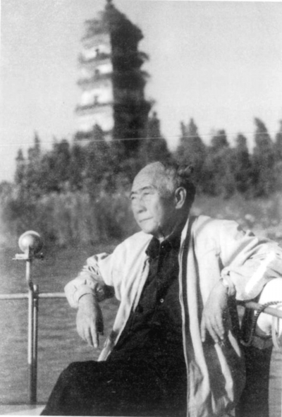 一九九一年,汪曾祺在故鄉(xiāng)高郵的運河上