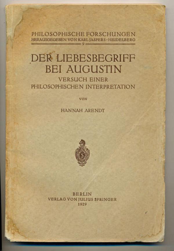 漢娜·阿倫特1929年在她的導(dǎo)師,著名存在主義哲學(xué)家雅斯貝爾斯指導(dǎo)下完成了博士論文《奧古斯丁的愛的概念》(Der Liebesbegriff bei Augustin),這是她登上學(xué)術(shù)舞臺的首部著作,1929年由施普林格出版社在柏林出版。受她政治思想吸引的的研究者們很少注意到這部以神學(xué)為主題的作品,但在奧古斯丁學(xué)界,她大膽挑戰(zhàn)這位教父權(quán)威的觀點(diǎn)卻不時(shí)受到關(guān)注。其實(shí)阿倫特跟她的另一位著名導(dǎo)師海德格爾一樣,都是從神學(xué)轉(zhuǎn)向了哲學(xué)研究。阿倫特十六歲就讀過康德的《純粹理性批判》和《理性界限內(nèi)的宗教》,她高中從文科中學(xué)退學(xué)后,先在柏林大學(xué)旁聽了幾個(gè)學(xué)期。在那里,天主教存在主義神學(xué)家羅曼諾·瓜爾蒂尼(Romano Guardini)的神學(xué)課吸引了她,接著她醉心于丹麥神學(xué)家和哲學(xué)家克爾凱郭爾的著作,從而做出了主修神學(xué)的決定。1924年她提前一年通過了中學(xué)畢業(yè)會(huì)考獲得大學(xué)入學(xué)資格,進(jìn)入了馬堡大學(xué)。阿倫特在馬堡期間也選修過德國神學(xué)家魯?shù)婪颉げ紶柼芈≧udolf Bultmann)的新約神學(xué)課程,布爾特曼以對“新約的非神話化”研究著稱。不過阿倫特很快就放棄了神學(xué),轉(zhuǎn)而跟隨海德格爾和雅斯貝爾斯所引領(lǐng)的哲學(xué)批判潮流。