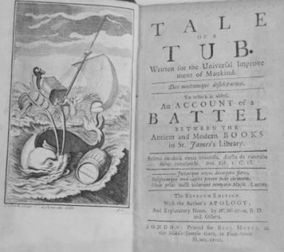 斯威夫特在文化上是個古典主義者。1701年他從三一學院獲得神學博士,在十七世紀的西方大學里,神學與古典哲學的關系非常緊密,所以他不免受到古典主義的熏陶,具備拉丁文學和文化修養(yǎng)。斯威夫特身處新古典主義盛行的世紀,在這個以推崇理性著稱的時代,一切政治、宗教制度以及陳規(guī)陋習都被送到理性的法庭面前進行審判。個人是身處歷史中的個人,斯威夫特的文化選擇和時代語境密切相關。文體上,斯威夫特效仿賀拉斯(QuintusHoratiusFlaccus)、維吉爾(Virgilius)和奧維德(PubliusOvidi?usNaso)等古羅馬文學家,用理性駕馭作品,行文清晰有條理,善用巧智(wit)。十七世紀的巴洛克和洛可可讓浮華、矯揉造作和濫用情感的藝術方式風靡一時,而新古典主義的出現(xiàn)在某種程度上是對這兩種藝術思潮的反駁。斯威夫特的恩主、輝格黨派外交家威廉·坦普爾爵士(LordWilliamTemple)便是新古典主義的先驅人物,坦普爾曾站在古典主義的立場上寫過關于古代學問與現(xiàn)代學問的文章,在文章中贊賞了波義耳 (CharlesBoyle)編注的《法拉里斯的書信》(EpistlesofPhalaris,1695),因此遭到沃頓(William Wot?ton)和本特利(RichardBent?ley)的批評。作為其秘書的斯威夫特寫出了為自己恩主辯護的《書的戰(zhàn)爭》,指責現(xiàn)代作家為蜘蛛,造出的都是糞便和毒素,而古典大師則是蜜蜂,帶來甜蜜和光明。1714年,新古典主義的另一代表蒲柏(AlexanderPope)和斯威夫特一起倡導建立了斯克里布萊拉斯俱樂部(ScriblerusClub),寫了不少詩歌和散文。他的散文風格冷靜,充滿巧智。其詩歌更是帶有典型的古典主義風格,格式拘謹,效法古希臘抒情詩人品達(Pindar),模仿新古典主義者德萊頓(JohnDryden)和考利(AbrahamCowley)。
