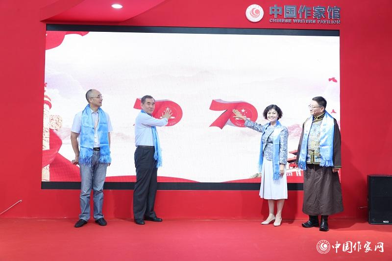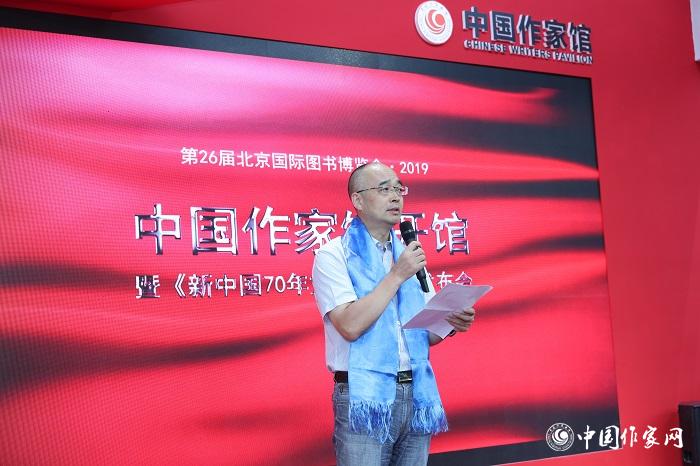 今年是新中國成立70周年,也是中國作協(xié)成立70周年。本屆“中國作家館”以“新中國文學(xué)70年”為主題。吳義勤在致辭中說,70年來,我們偉大的祖國在黨的領(lǐng)導(dǎo)下,一路披荊斬棘、乘風(fēng)破浪,走向輝煌、走向復(fù)興。70年來,中國文學(xué)與新中國一路同行,與時(shí)代一同成長,不忘初心、砥礪奮進(jìn),精心描繪廣大人民的奮斗歷程,真情記錄社會(huì)主義中國發(fā)展變遷,奉獻(xiàn)出一批又一批文學(xué)精品,充分發(fā)揮文學(xué)藝術(shù)引領(lǐng)風(fēng)尚、培根鑄魂的作用。特別是黨的十八大以來,在習(xí)近平新時(shí)代中國特色社會(huì)主義思想指引下,廣大作家和文學(xué)工作者堅(jiān)持與時(shí)代同步伐,堅(jiān)持以人民為中心,堅(jiān)持以精品奉獻(xiàn)人民,堅(jiān)持用明德引領(lǐng)風(fēng)尚,全身心投入中國特色社會(huì)主義新時(shí)代,不斷推出精品力作,我國文學(xué)事業(yè)呈現(xiàn)出百花競(jìng)放、蓬勃發(fā)展的繁榮景象。今年的“中國作家館”聚焦新中國文學(xué)70年,就是為了全面總結(jié)新中國催生新文學(xué)的繁榮發(fā)展歷程,全景展現(xiàn)中國文學(xué)從新起點(diǎn)邁進(jìn)新時(shí)代取得的輝煌成就,并以此向不斷進(jìn)步、繁榮興盛的中國文學(xué)致敬,向辛勤耕耘、潛心創(chuàng)作的中國作家致敬。也期待廣大讀者和文學(xué)愛好者通過“中國作家館”進(jìn)一步增進(jìn)對(duì)中國當(dāng)代文學(xué)的了解,在閱讀文學(xué)作品的過程中獲得前行的信心和力量。