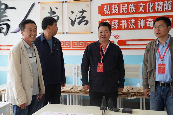 采訪團(tuán)參觀池溝村小學(xué)書法室