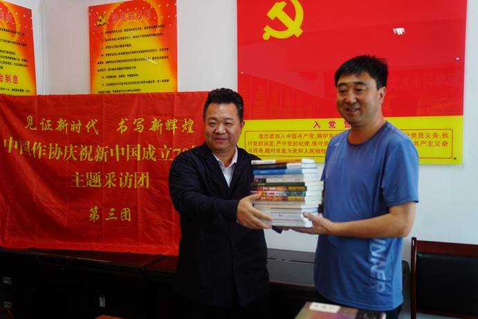 邱華棟代表采訪團(tuán)向池溝村贈(zèng)書