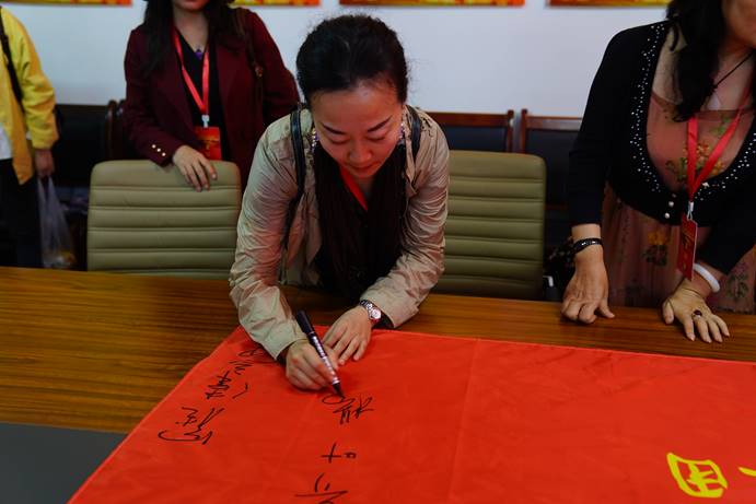 采訪團(tuán)作家在采訪團(tuán)錦旗上簽名留念