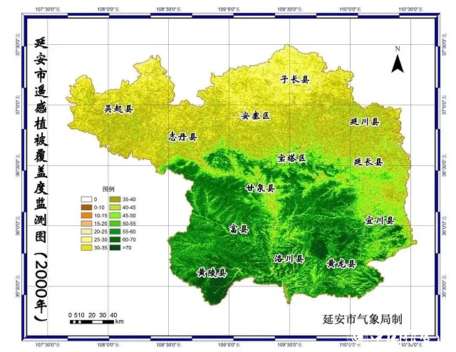 2000年延安市遙感植被覆蓋度監(jiān)測圖