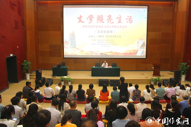 采訪期間,中國作協(xié)還在延安開展了“文學(xué)照亮生活”全民公益大講堂活動,著名作家、湖北省文聯(lián)主席劉醒龍和著名軍旅作家陶純分別以《文學(xué)的激情》《從閱讀到寫作》為題,為延安人民做了兩場精彩的文學(xué)講座。