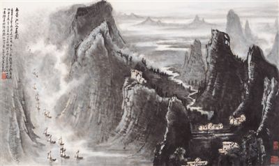 新中國山水畫就題材而論,最突出的成就便是表現(xiàn)祖國河山新貌。這種表現(xiàn),帶來山水畫審美觀的時(shí)代新變——由“靜美”為主流,變?yōu)椤皠?dòng)美”居主流;由蕭疏清淡,變?yōu)樾蹅喓瘛r(shí)代變了,審美標(biāo)準(zhǔn)也就變了,時(shí)代特點(diǎn)也就更加鮮明。新的審美境界和精神氣象,推動(dòng)山水畫現(xiàn)代轉(zhuǎn)型,成就了新中國山水畫的時(shí)代高峰。
