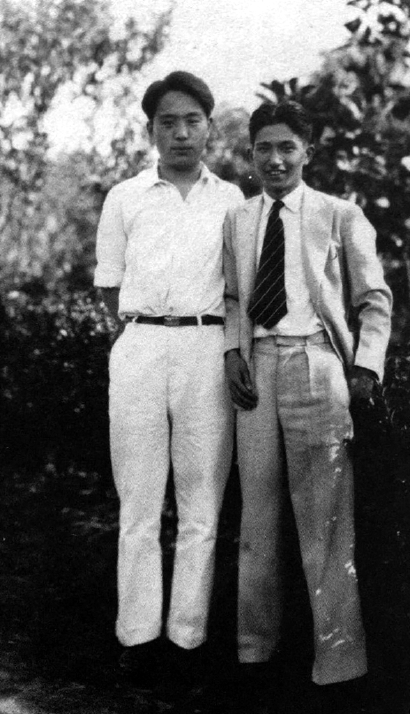 1931年6月,靳以(左)與學友在江灣復旦