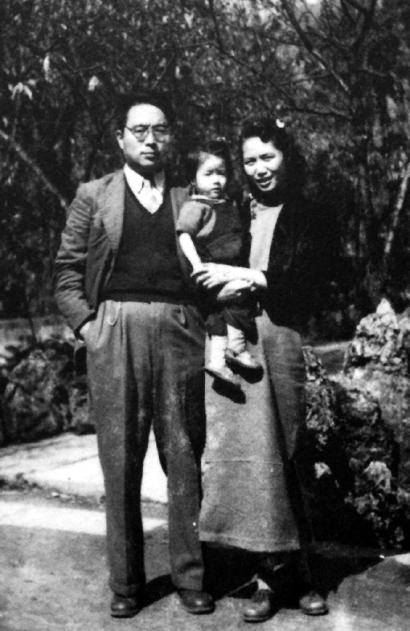 1945年,靳以與妻女在北碚夏壩復旦新村