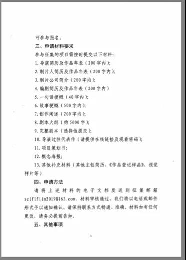 請(qǐng)將上述材料的電子文檔發(fā)送到征集郵箱scififilm2019@163.com,材料審核通過(guò),我們將以電話(huà)或郵件形式予以通知確認(rèn)。請(qǐng)保持聯(lián)系方式暢通、準(zhǔn)確。材料如有任何更改,請(qǐng)務(wù)必提前告知。