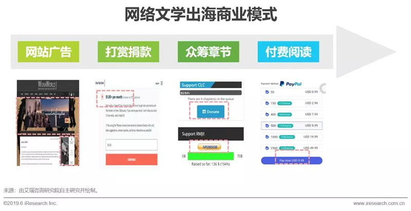 網(wǎng)絡(luò)文學(xué)出海在逐漸發(fā)展的過程中,行業(yè)各方也在努力建構(gòu)著適合出海業(yè)務(wù)發(fā)展的商業(yè)模式。從最初的海外翻譯網(wǎng)站建立的廣告模式到后續(xù)的打賞捐款及眾籌章節(jié),成為早期支撐網(wǎng)文出海取得收入的方式。隨著海外網(wǎng)文平臺的建立及規(guī)模化發(fā)展,在不斷摸索海外市場的基礎(chǔ)上開始逐漸嘗試付費閱讀的商業(yè)模式,通過借用國內(nèi)已經(jīng)非常成熟的付費閱讀推行經(jīng)驗來積極建構(gòu)網(wǎng)文出海業(yè)務(wù)較為標(biāo)準(zhǔn)化的商業(yè)模式,以多元化的探索推動向付費閱讀深入發(fā)展。