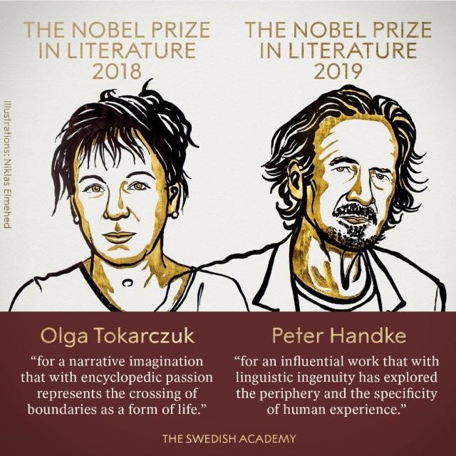 2018年諾貝爾文學(xué)獎(jiǎng)得主波蘭女作家奧爾加· 托卡爾丘克,她的女權(quán)主義者、素食者、政治投入度高、市場讀者緣極好等標(biāo)簽立刻映入人們的眼簾。尤其有文學(xué)實(shí)力,堪稱天時(shí)地利人和。在必有一位女性的確信下,奧爾加· 托卡爾丘克的名字是被多家瑞典媒體猜中了的,這在至少近十年的諾獎(jiǎng)評(píng)選中十分罕見。雖然無法證明專家組的文化人和媒體人推動(dòng)了這一結(jié)果,但至少可以猜測,他們推動(dòng)了學(xué)院對(duì)國際文學(xué)市場新形勢的跟隨。托卡爾丘克被瑞典文學(xué)評(píng)論界廣泛贊賞,年長的瑞典文學(xué)界人物及普通瑞典讀者對(duì)其作品卻并不熟悉。反之,很多人對(duì)彼得·漢德克如數(shù)家珍。漢德克更被看作是文學(xué)也是上世紀(jì)八九十年代瑞典學(xué)院輝煌時(shí)代的實(shí)力派,文學(xué)成就足以讓他在十年、二十年前獲得諾貝爾文學(xué)獎(jiǎng),而并非今天。漢德克后來因?yàn)樵谇澳纤估騿栴}上的政治不正確,被文學(xué)評(píng)論界以為從此和諾貝爾文學(xué)獎(jiǎng)無緣。