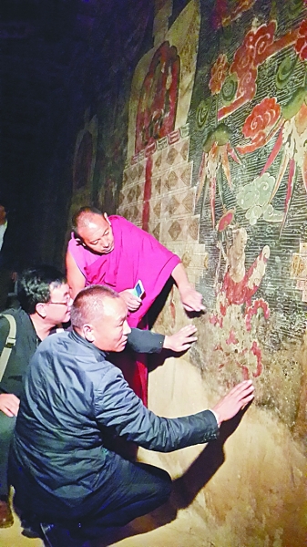 哲蚌寺僧人在與專(zhuān)家一起商討寺內(nèi)壁畫(huà)的修復(fù)方案。本報(bào)記者李韻攝/光明圖片