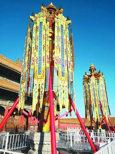 今年春節(jié)期間立在紫禁城乾清宮前的萬(wàn)壽燈。作為故宮博物院最大的文創(chuàng)產(chǎn)品,春節(jié)過(guò)后,它與同時(shí)制作的天燈、幾組宮燈一起進(jìn)行公益拍賣(mài),款項(xiàng)全部捐贈(zèng)貧困地區(qū)用于兒童教育。本報(bào)記者李韻攝/光明圖片