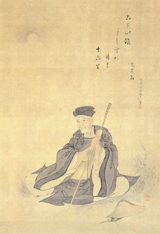 松尾芭蕉,本名宗房,通稱忠右衛(wèi)門(mén),1644年(正是中國(guó)明清鼎革之年)出生于伊賀國(guó)上野赤坂的山鄉(xiāng)(在今日三重縣)。別號(hào)桃青、坐興庵、栩栩齋、花桃園、泊船堂、芭蕉庵、風(fēng)羅坊等。芭蕉是其最終確定的俳號(hào)。最初侍從伊賀藤堂藩藩主之子藤堂良忠(俳號(hào)為蟬吟)學(xué)習(xí)俳諧,后赴京都師從于貞門(mén)派的北村季吟。1666年良忠去世后,離藩主家,1672年立志成為俳諧師前往江戶。1674年,北村季吟傳授了俳諧論書(shū)《埋木》。1675年又轉(zhuǎn)入宗因門(mén)下,成為談林派的新銳而漸為人知。1678年,獲得“宗匠立機(jī)”資格(“宗匠”是以俳諧為職事的專業(yè)詩(shī)人,可以招收門(mén)徒,并收取指導(dǎo)金以維持生活)。1680年在門(mén)人友人資助下,于深川營(yíng)建芭蕉庵。1682年,在刊行的句集中初次使用“芭蕉”這一俳號(hào),此號(hào)取自其隱居的“芭蕉庵”。1684年開(kāi)始“甲子吟行”(即《野曝紀(jì)行》)之旅,確立了自己的俳風(fēng),《俳諧七部集》的第一部句集《冬日》編成。其后又展開(kāi)名為“笈之小文”和“更科紀(jì)行”的旅行,創(chuàng)作漸漸趨于成熟。至1689年“奧州小道”之旅,旅行中的體驗(yàn)、思索在俳文和句作中得以充分展開(kāi),其成果于句集《猿蓑》中得以完整呈現(xiàn)。1693年刊行的《炭俵》正式確立了芭蕉獨(dú)特的風(fēng)調(diào),入其門(mén)下學(xué)習(xí)的各地門(mén)人眾多,其中最有名的十人日后被稱為“蕉門(mén)十哲”。1694年,芭蕉在旅行途中客死于大坂,葬于大津義仲寺。除《幻住庵記》,芭蕉的俳文、紀(jì)行文、日記都在他去世后得以刊行。發(fā)句約1000首,另還余留了約160卷的連句(芭蕉參與歌仙時(shí)的句作)。
