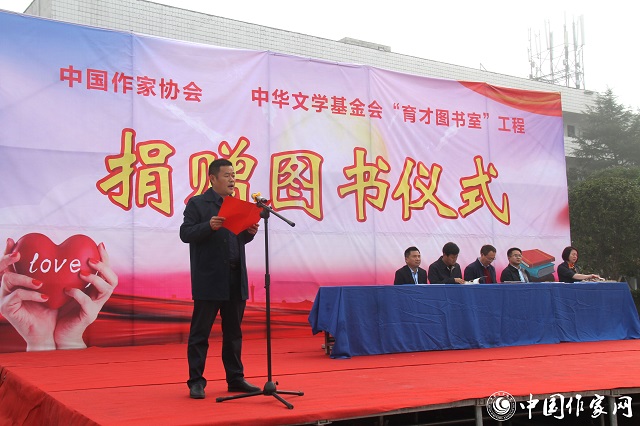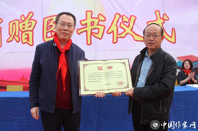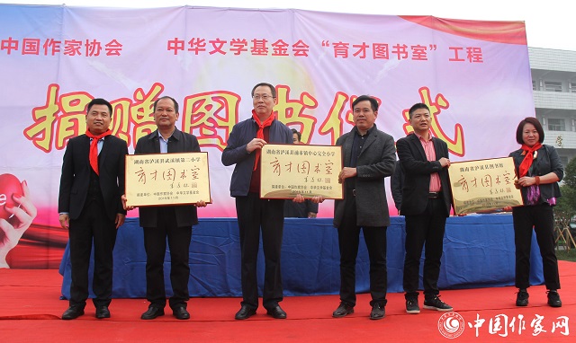 11月4日上午,中國作家協(xié)會、中華文學(xué)基金會“育才圖書室”工程向湖南省湘西土家族苗族自治州瀘溪縣圖書捐贈儀式在瀘溪縣浦市鎮(zhèn)中心完全小學(xué)舉行。中華文學(xué)基金會秘書長鮑堅(jiān),中國作協(xié)創(chuàng)聯(lián)部主任彭學(xué)明,瀘溪縣人民政府縣長向恒林、副縣長尚遠(yuǎn)道、縣教體局局長譚子好,以及浦市中心完小3000余名師生參加了捐贈活動。捐贈儀式由瀘溪縣委宣傳部長向夢華主持。