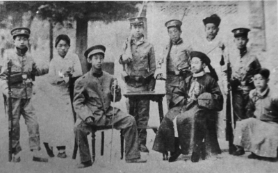 1913年,清華學(xué)校讀書(shū)時(shí),聞一多在話劇《革命軍》中飾演革命黨人(右一)。