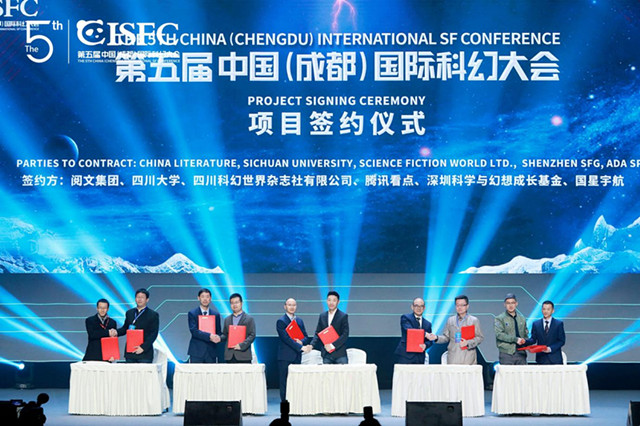 11月22日,以“多元幻想,多彩未來”為主題的第五屆中國(成都)國際科幻大會在成都召開。本次科幻盛宴為期三天,包括“2019科幻高峰會議暨亞洲科幻會議”、“銀河之夜”頒獎盛典、科幻主題系列巡展及40余場行業(yè)高峰論壇談,全面展示了以科幻文學(xué)為源頭的中國科幻產(chǎn)業(yè)發(fā)展現(xiàn)狀及未來趨勢。與往屆會議相比,本屆大會更注重科幻事業(yè)的“國際化”、“產(chǎn)業(yè)化”發(fā)展,邀請了來自14個國家的近60位國際嘉賓、300余位中國知名科幻作家、相關(guān)學(xué)者及產(chǎn)業(yè)精英共同出席。閱文集團(tuán)作為此次大會的重要合作伙伴,在科幻文學(xué)培育、出版、IP運(yùn)營開發(fā)等方面與會議主辦方達(dá)成深度戰(zhàn)略合作,同時旗下作家連續(xù)三年摘得科幻最高獎“銀河獎”桂冠,依托平臺力量進(jìn)一步推動以文學(xué)為代表的科幻作品向精品化、主流化不斷邁進(jìn)。