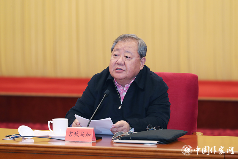 中國(guó)作協(xié)副主席吉狄馬加主持大會(huì)交流發(fā)言并作會(huì)議總結(jié)