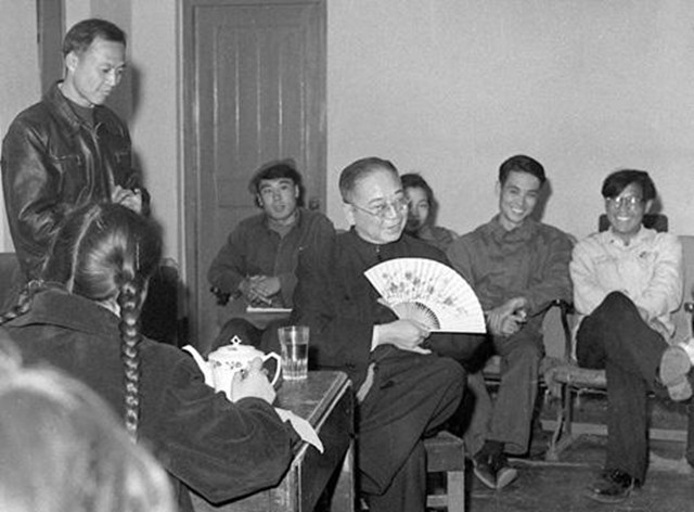 歐陽予倩(中間執(zhí)扇者)給中央戲劇學(xué)院的學(xué)生講課