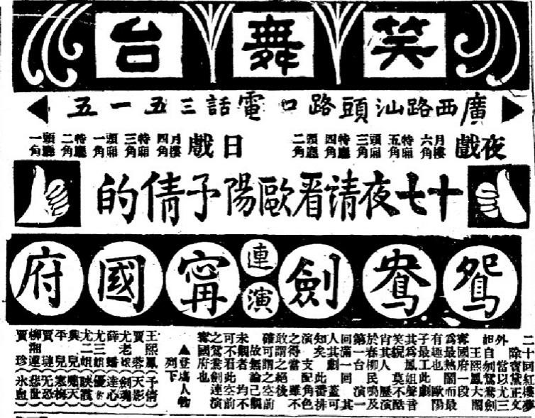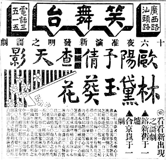 歐陽予倩在笑舞臺(tái)演出“紅樓”劇的廣告兩則