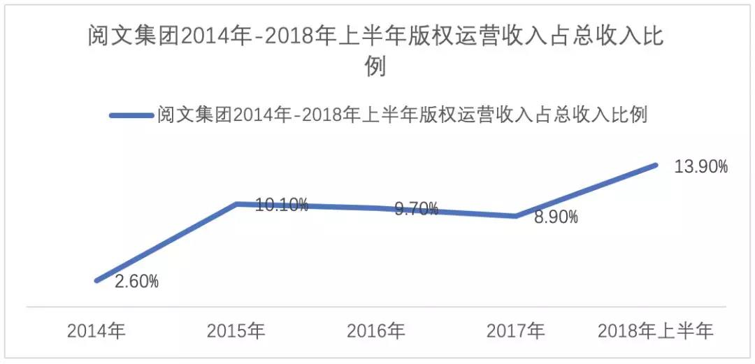 除此之外,版權(quán)收入在總收入中的占比也從2014年的2.6%增長至2015年的10.1%。雖然2016年、2017年的占比有所下降,但僅在2018年的上半年,版權(quán)運(yùn)營收入就達(dá)到了占比13.9%,呈現(xiàn)增長回歸趨勢。