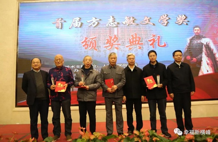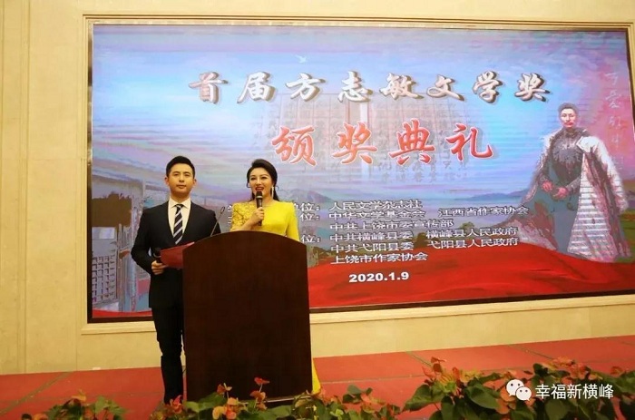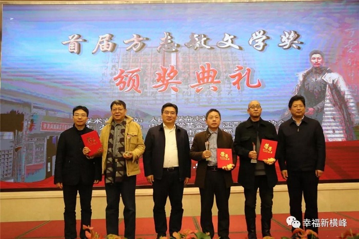 1月9日,由《人民文學(xué)》雜志社作為學(xué)術(shù)指導(dǎo)單位,中華文學(xué)基金會(huì)、江西省作家協(xié)會(huì)、中共上饒市委宣傳部主辦,上饒市橫峰縣、弋陽(yáng)縣以及上饒市作家協(xié)會(huì)承辦的首屆方志敏文學(xué)獎(jiǎng)?lì)C獎(jiǎng)典禮在南昌前湖酒店舉行。方志敏烈士之女方梅等方志敏親屬及其生前戰(zhàn)友子女代表,《人民文學(xué)》主編施戰(zhàn)軍,江西省委宣傳部副部長(zhǎng)黎隆武,上饒市委常委、宣傳部部長(zhǎng)丁曉勝,橫峰縣委書記饒清華,弋陽(yáng)縣委書記謝柏清等領(lǐng)導(dǎo)出席頒獎(jiǎng)典禮。江西省、市、縣相關(guān)部門負(fù)責(zé)人及中央、省、市、縣媒體記者,紅色文學(xué)愛好者,共計(jì)200余人參加頒獎(jiǎng)典禮。