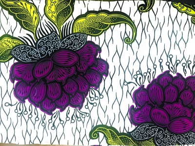 當(dāng)晚,我按圖索驥尋找到河南路的紡織品店??吹甑拇蠼憬o我看了幾樣印染大麗花的被面、被套和枕套以及毛巾用品。她說她原來就在印染廠車間工作,每天都能聽到機器的轟鳴,因此現(xiàn)在和人說話都要很大聲音。她說以前印染都是機器漿染,布料很硬的,要漿染很多遍,而且一次只能一個顏色,容易對不準(zhǔn)色線?,F(xiàn)在機器先進(jìn)了,一次性可以染出四五個顏色?,F(xiàn)在青島的工廠基本都搬到高密,因此她店里的印花布都是高密產(chǎn)的。我把這些花樣發(fā)給孫基亮先生看,他說有些是印度的花卉紋樣,已經(jīng)不再是原有的傳統(tǒng)紋樣。后來在青島做舊書買賣的朋友幫我弄到了一批剛剛停產(chǎn)的印染廠的印染花布,花樣繁復(fù),華美時尚,雖只是二十幾個品種,但足以窺見青島印花布曾經(jīng)的輝煌。孫先生看了之后說,“有非洲蠟防(印染工藝)叫康嘎(布)的圖案紋樣”,這足以看到青島印花布也是隨時代千變?nèi)f化的。