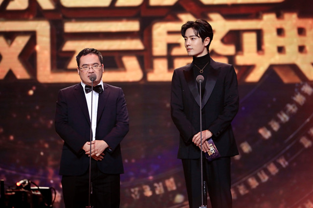 閱文集團(tuán)聯(lián)席CEO吳文輝與演員肖戰(zhàn)共同揭曉男生頻道、女生頻道TOP10作品