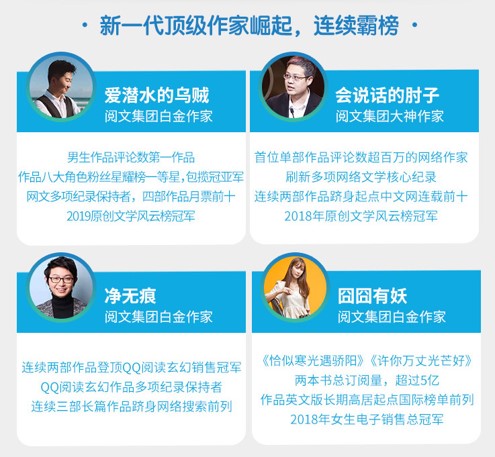 值得關(guān)注的是,從速途研究院的“2019原創(chuàng)文學(xué)白金作家及大神作家”最新名單看,憑借優(yōu)質(zhì)的創(chuàng)作實(shí)力、扎實(shí)的粉絲基礎(chǔ)、超強(qiáng)的開(kāi)拓能力以及廣闊的IP衍生前景,眾多位中生代作家以領(lǐng)航者的姿態(tài)崛起,沖刺頭部作家行列。其中,男頻作家愛(ài)潛水的烏賊憑借王牌作品《詭秘之主》從去年的25位躍居今年榜首,穩(wěn)居榜單前十的會(huì)說(shuō)話的肘子、10年厚積薄發(fā)以作品《牧神記》刷屏各大榜單的宅豬等均是中生代作家崛起的代表。