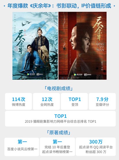 報(bào)告認(rèn)為,網(wǎng)文IP在持續(xù)運(yùn)營(yíng)下成為文化產(chǎn)業(yè)的新增長(zhǎng)極,IP的價(jià)值鏈條不斷深化。以《慶余年》為例,其獲得了豆瓣評(píng)分7.9分,在騰訊視頻播放量沖破67億次,愛(ài)藝奇熱度最高值8800,是2019年貓眼劇集影響力網(wǎng)絡(luò)平臺(tái)綜合總排名第一位。劇集播放期間,原著在起點(diǎn)讀書(shū)APP上的在線閱讀人數(shù)、單書(shū)在線閱讀收入增長(zhǎng)50倍、推薦票達(dá)352萬(wàn)張,聚集超200萬(wàn)粉絲??缙脚_(tái)的不同場(chǎng)景用戶因“故事”而互動(dòng)討論,推動(dòng)《慶余年》在完結(jié)十年后重登暢銷榜前三甲。