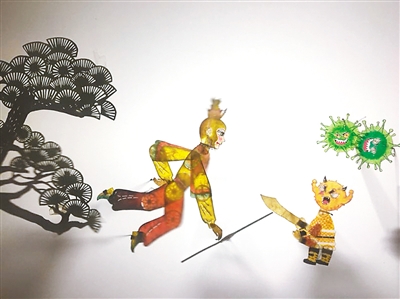 皮影動(dòng)畫《孫悟空大戰(zhàn)病毒妖》劇情貼近當(dāng)下生活,把孫悟空降妖除魔的傳統(tǒng)形象與白衣戰(zhàn)士抗擊疫情、消滅病毒巧妙結(jié)合,是非遺在抗擊疫情宣傳方面的一次嘗試。
