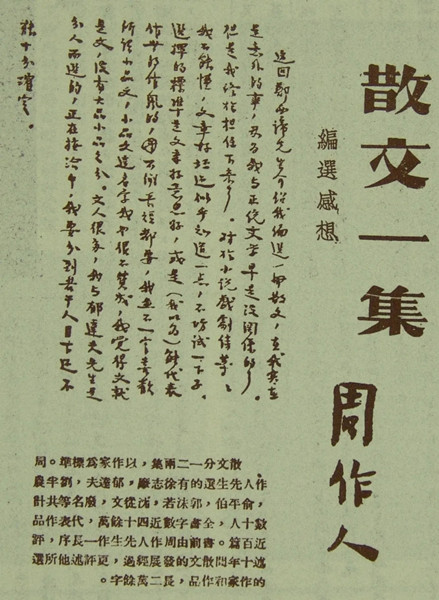 [17]參見趙家璧《編輯憶舊》172—174頁、182頁、202頁。趙家璧回憶有誤,胡適那時并非“北京大學(xué)校長”,且因其政治立場并不被政府欣賞,不可能“對審查會也許能起掩護的作用”;但要說“對一般讀者”有“號召力”,那倒是真的。至于周作人,時人并不知道他日后會在抗戰(zhàn)中“落水”,以他當(dāng)年在文壇的地位及影響力,出任“散文一集”的編者乃求之不得,怎么會需要茅盾來為他辯解呢?