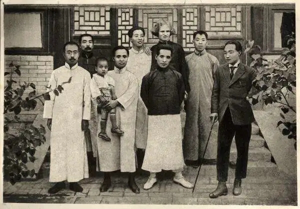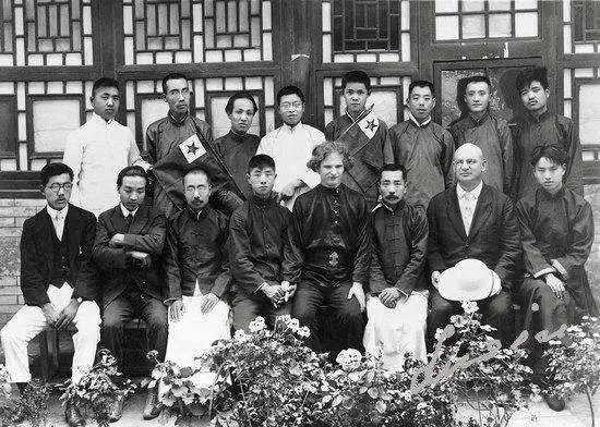 1922年5月23日 攝于北京世界語學(xué)會(huì)。前排左起:王玄、吳空超、周作人、張禪林、愛羅先珂、魯迅、Sofoklof、李世璋。后排左起:謝鳳舉、呂傳周、羅東杰、潘明誠、胡企明、陳昆三、陳聲樹、馮省三