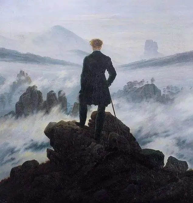 德國浪漫主義代表畫作弗里德里?!鹅F海的漫游者》