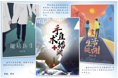作為醫(yī)生家屬,網(wǎng)絡(luò)作家徐婠推出作品《規(guī)培醫(yī)生》。 新晉知名作家真熊初墨根據(jù)工作經(jīng)驗創(chuàng)作的網(wǎng)文《手術(shù)直播間》2018年上架起點中文網(wǎng),連載了近630萬字。 徐婠在新作《生活挺甜》中,關(guān)注以往網(wǎng)文中較少涉獵的80后婦產(chǎn)科男大夫。 制圖:李潔
