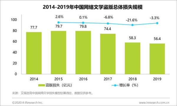 閱文集團(tuán)的相關(guān)研究報告顯示,2019年中國網(wǎng)絡(luò)文學(xué)總體盜版損失規(guī)模為56.4億元