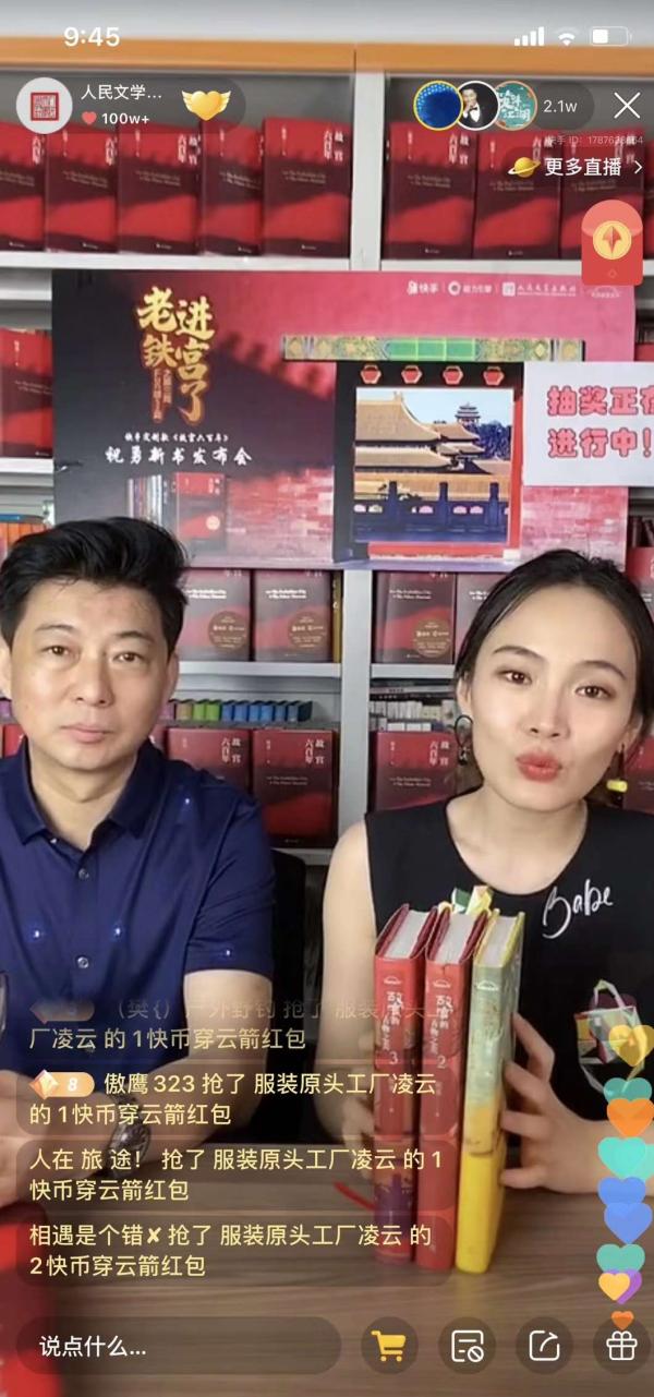 作為《故宮六百年》的出版方,人民文學(xué)出版社首次選擇在快手上進(jìn)行直播,人民文學(xué)出版社社長(zhǎng)助理宋強(qiáng)表示,“這次我們和快手聯(lián)合舉辦了祝勇老師的新書《故宮六百年》的新書發(fā)布會(huì),同時(shí)也推出了人文社和快手的聯(lián)名款《故宮六百年》。對(duì)于傳統(tǒng)出版社來(lái)說(shuō)是一次非常具有創(chuàng)新意義的嘗試。我們也希望未來(lái)能夠更多和快手平臺(tái)進(jìn)行合作,更多地和讀者進(jìn)行面對(duì)面的交流,從而多角度多元化,讓文學(xué)進(jìn)入更多人的世界?!?/p>