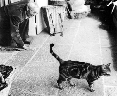 80歲的黑塞和他最后那只公貓波菲在陽臺上