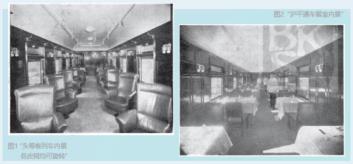 3.圖1:“頭等客列車(chē)內(nèi)景各皮椅均可旋轉(zhuǎn)”,圖2:“滬平通車(chē)餐室內(nèi)景”,轉(zhuǎn)引自《記兩路新備滬平聯(lián)運(yùn)客列車(chē)》,《旅行雜志》1934年第8卷第3期。