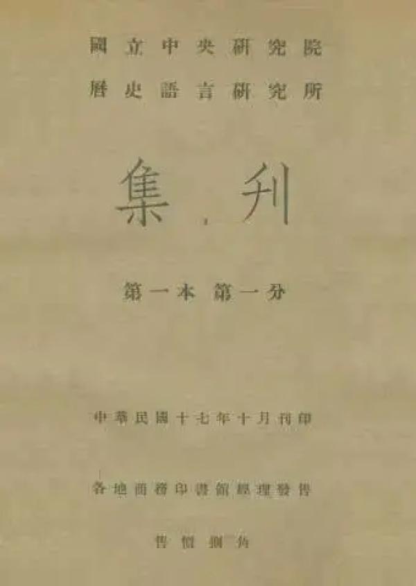 傅斯年撰文《歷史語言研究所之工作旨趣》,刊于民國十七年(1928)十月國立“中央研究院”《歷史語言研究所集刊》第一本第一分。