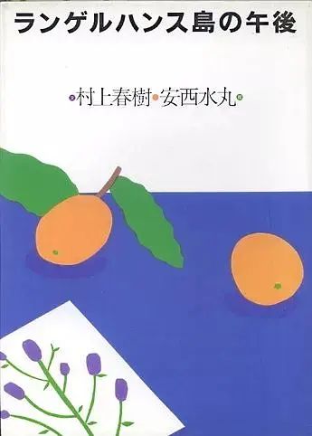 水丸注意到,佐佐木為村上畫的封面是色塊構成,沒有描線。所以他去掉了自己的插畫一貫以來最個性的描線?!度ブ袊穆飞习氩糠质前咨?,印了書名,下半部分是藍色底色上的白盤子,里面有兩只茶色的梨。加上陰影,一共七個顏色。深棕、淺棕、茶色、黃色、白色、天藍、海藍。蘊含了安定和不可思議的一幅。白與藍的分界既可看作是桌面,又是水丸作品中永恒的故鄉(xiāng)的海平線。多年后仍有年輕插畫師告訴安西,自己當初就是看到這個封面才決心投身插畫界。