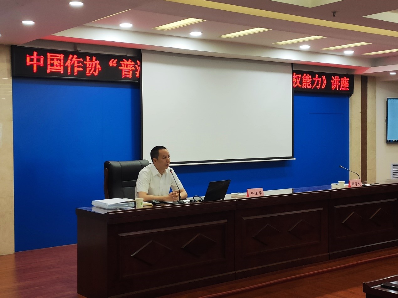 2020年8月21日,中國(guó)作家協(xié)會(huì)“普法巡講”活動(dòng)在山西省舉行,中國(guó)作家協(xié)會(huì)作家權(quán)益保障委員會(huì)委員、北京市雙全律師事務(wù)所主任鄧江華以“作家如何提高維權(quán)能力”為題,為山西省作家協(xié)會(huì)干部、會(huì)員、網(wǎng)絡(luò)作家等40余人授課,山西省作家協(xié)會(huì)黨組書(shū)記、主席杜學(xué)文出席活動(dòng)。