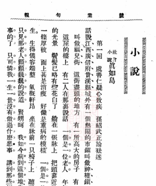 《真如島》第一回首頁(yè)(局部)