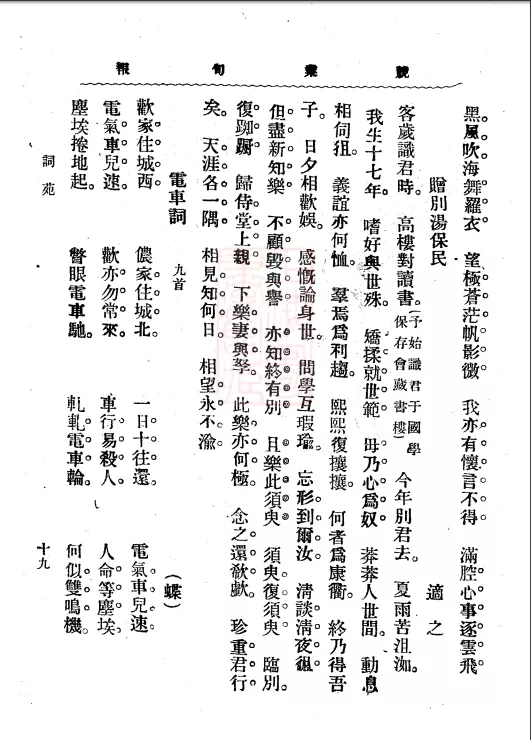 《電車詞》原文,《競(jìng)業(yè)旬報(bào)》1908年第29期
