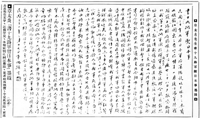 這篇文章是章氏晚年不多見的,一反書齋論學性質(zhì)的,有著錚錚鐵骨、血氣方剛的政論文章。當年魯迅所判定的已不問世事的那個晚年章太炎,那個“用自己的手和別人手幫造的墻,和時代隔絕了”的學界宿儒,在這篇文章中脫胎換骨,已然鐵血丹心,將要共赴國難而不再是閉門修習了。且看全文如下: