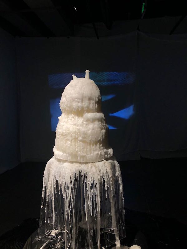 當外界的產(chǎn)物無法真正療愈內(nèi)心的時候,沉浸下來審視真正的自我變成了人生中重要的課題。此次“孤獨療愈室”展區(qū)用絲綢布簾分割開,營造出昏暗的環(huán)境讓觀展者沉浸自我,思考探索本我的存在。謝釵和Vasin這兩位藝術(shù)家都運用了多媒體作為表達媒介。他們的作品都主動包容了觀眾的主觀意識,加深了觀者精神和空間上的體驗。聽覺、視覺和觸覺均得到滿足。同時他們的作品中也包含了中國傳統(tǒng)思想的影響,體現(xiàn)出了作品極大的包容性,消融了過去與現(xiàn)在的界限。