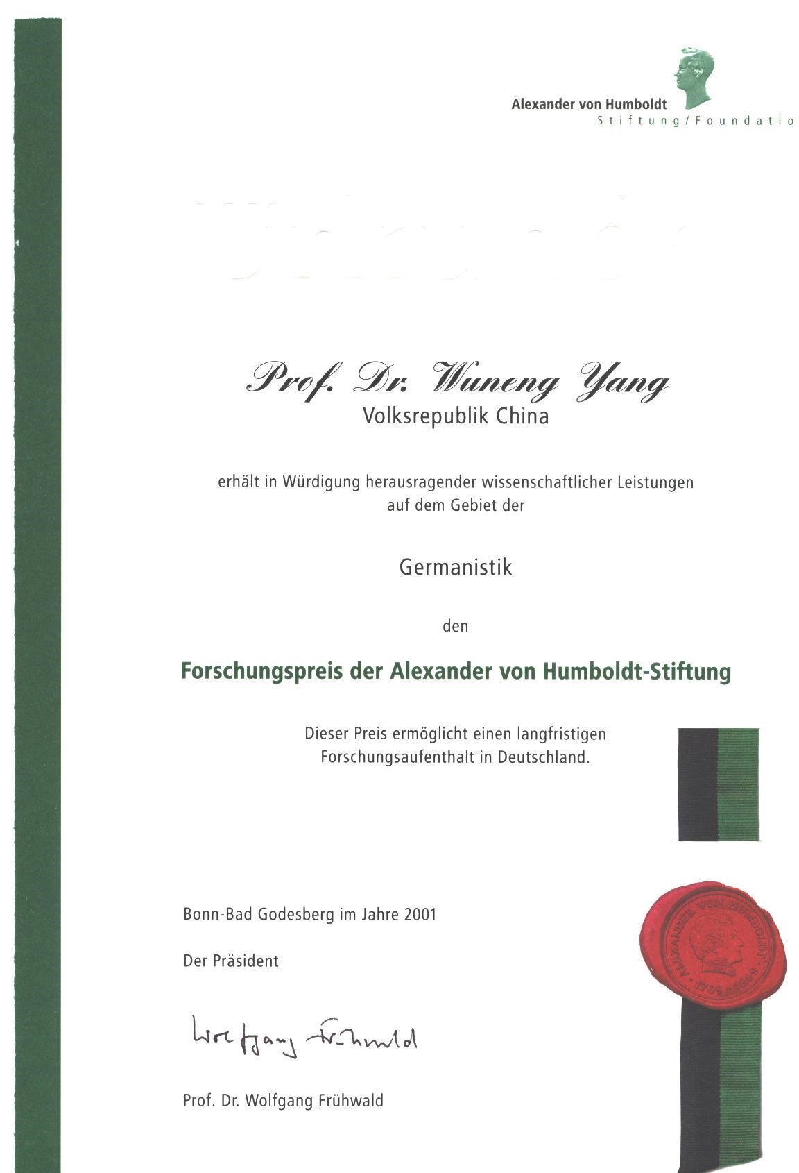 德國終身成就獎性質(zhì)的洪堡學(xué)術(shù)獎金