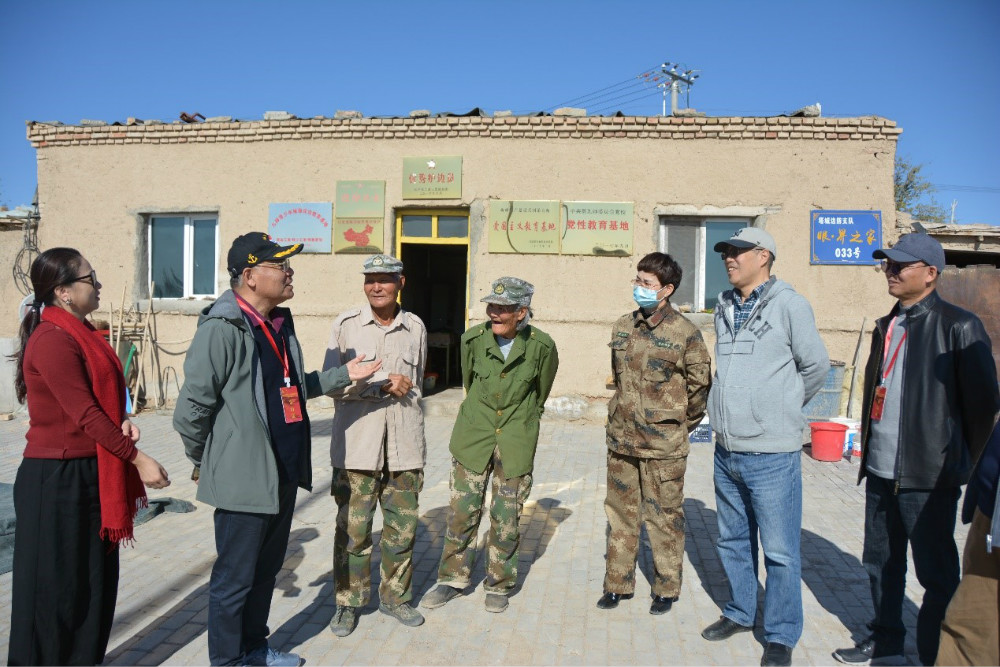 16日,采訪團來到裕民縣第九師161團魏德友居所,看望“時代楷?!?、“最美奮斗者”護邊員魏德友。魏德友自1964年響應中央號召來到新疆,就堅守在薩爾布拉克草原的邊境線上,50多年來義務巡邊20多萬公里,是邊境線上的活界碑?!拔乙?,繼續(xù)為祖國放牧巡邏”是他的鏗鏘之言。作家們參觀了魏德友來疆初期居住的“地窩子”,與老人親切交談,詳細了解其護邊歷史。山東作家高振感慨道,魏德友、劉景好夫婦用生命的芳華踐行沂蒙精神,為守土護國、保衛(wèi)邊境做出了自己的貢獻。