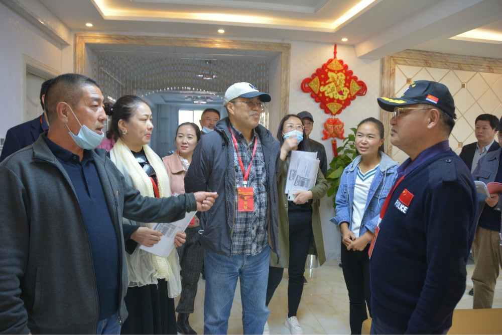 采訪團在霍城縣大西溝鄉(xiāng)苜蓿臺子村扶貧示范點參觀