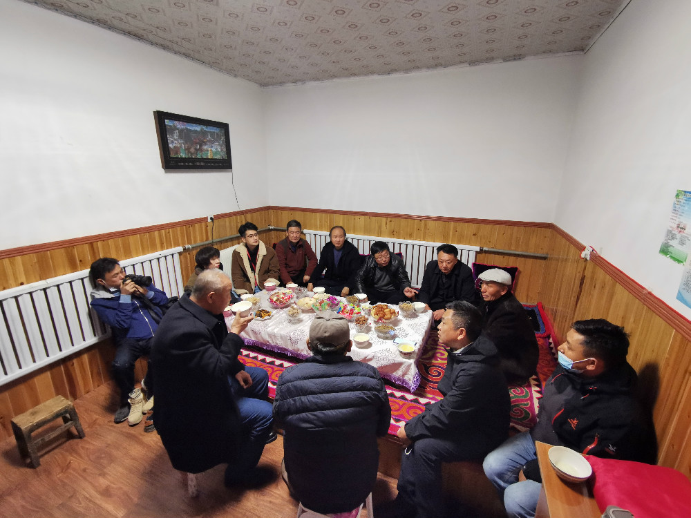 采訪團在博樂市貝鄉(xiāng)決肯村村民家中調研